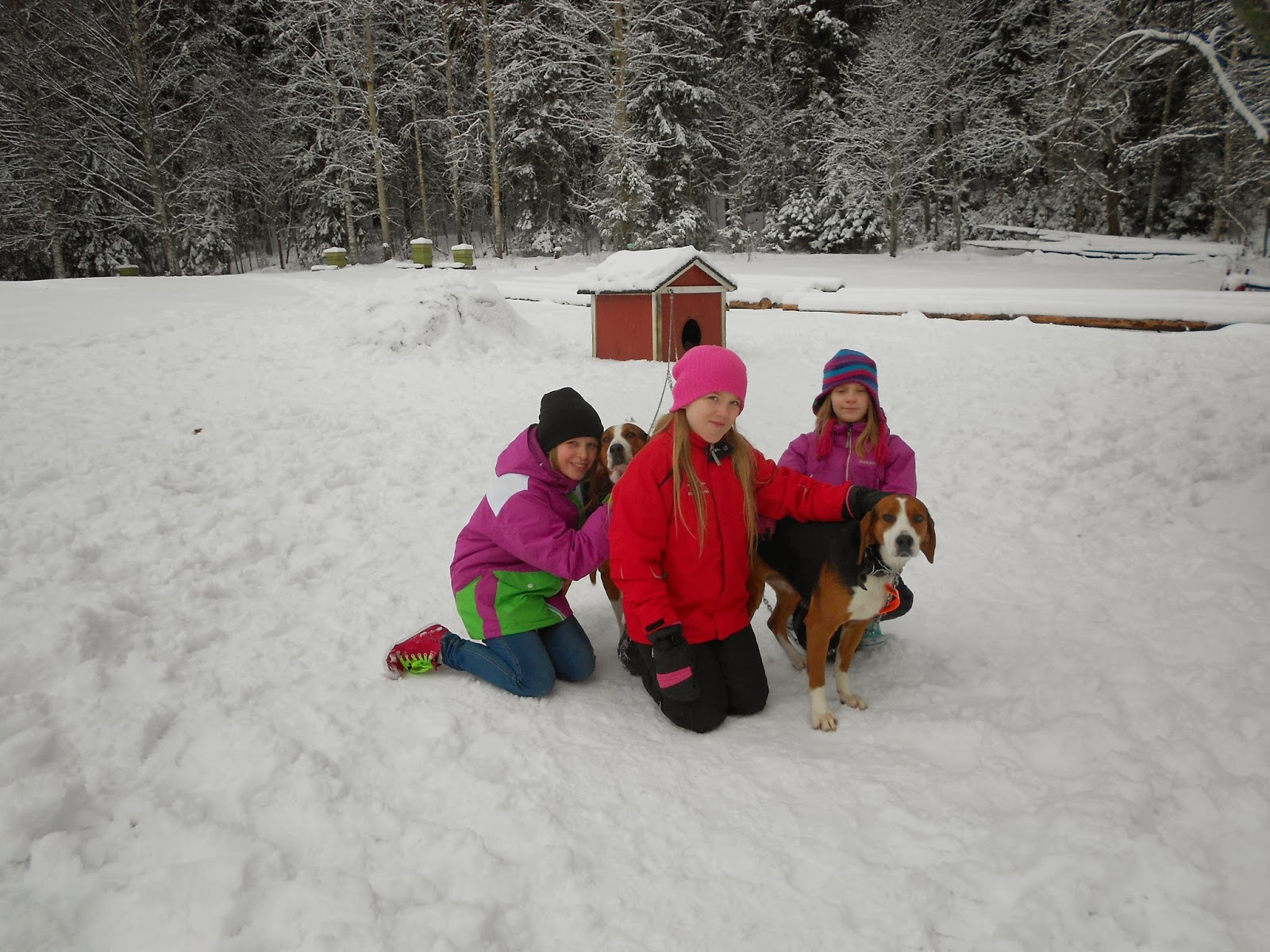 näimme heti kaksi koiraa. Näimme Konttilan isännän, hän pyysi, että